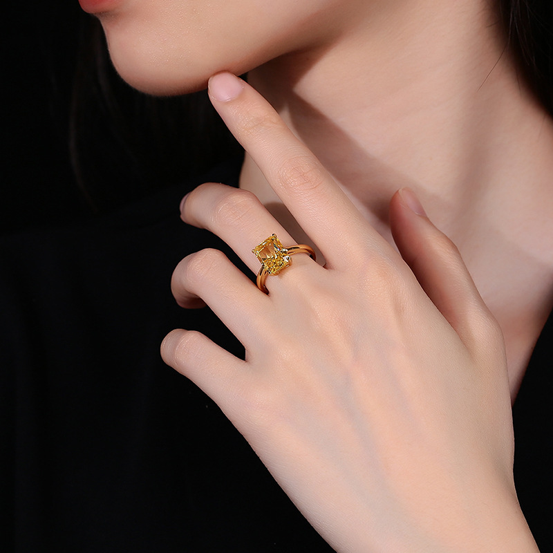 Classic Princess Square Ice Flower Cut Gold S925 Sterling Silver Women’s Fashion European and American Style