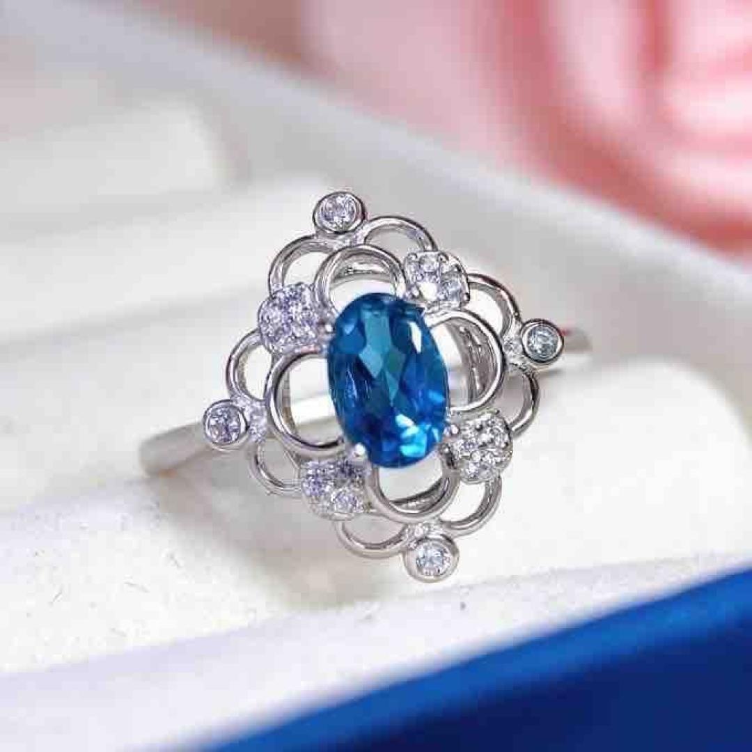 Natural blue topaz ring 2025, crafted entirely from S925 sterling silver.