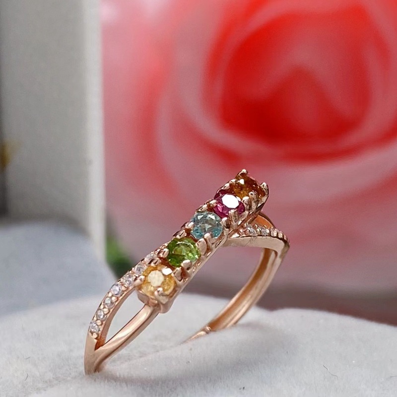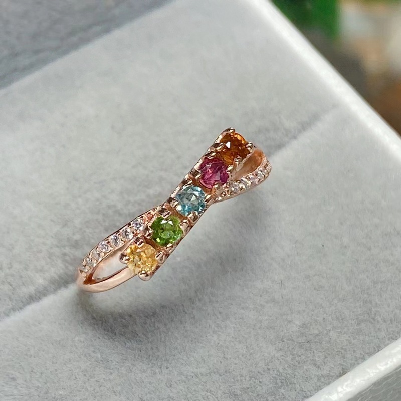 Natural cross-border tourmaline lock ring in S925 sterling silver. Simple ring for young women.