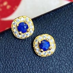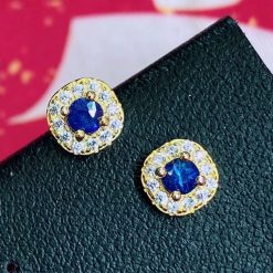 Natural sapphire earrings, S925 sterling silver with sapphire inlay, retro fashion women’s earrings, French style earrings.