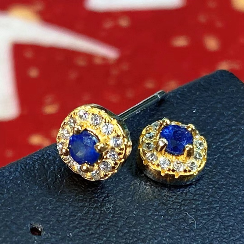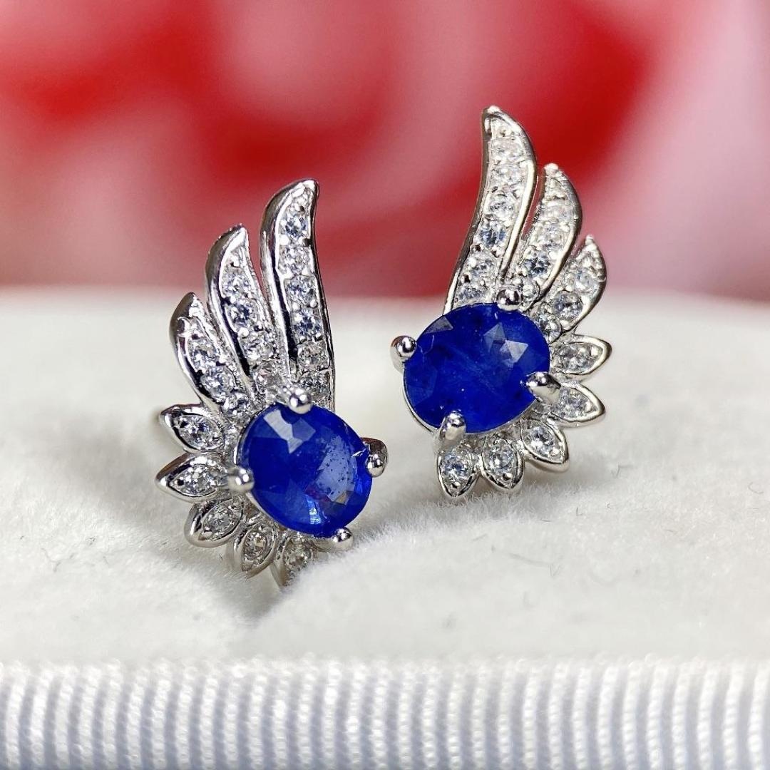 Natural sapphire earrings, S925 sterling silver with sapphire inlay, retro fashion women’s earrings, French style earrings.