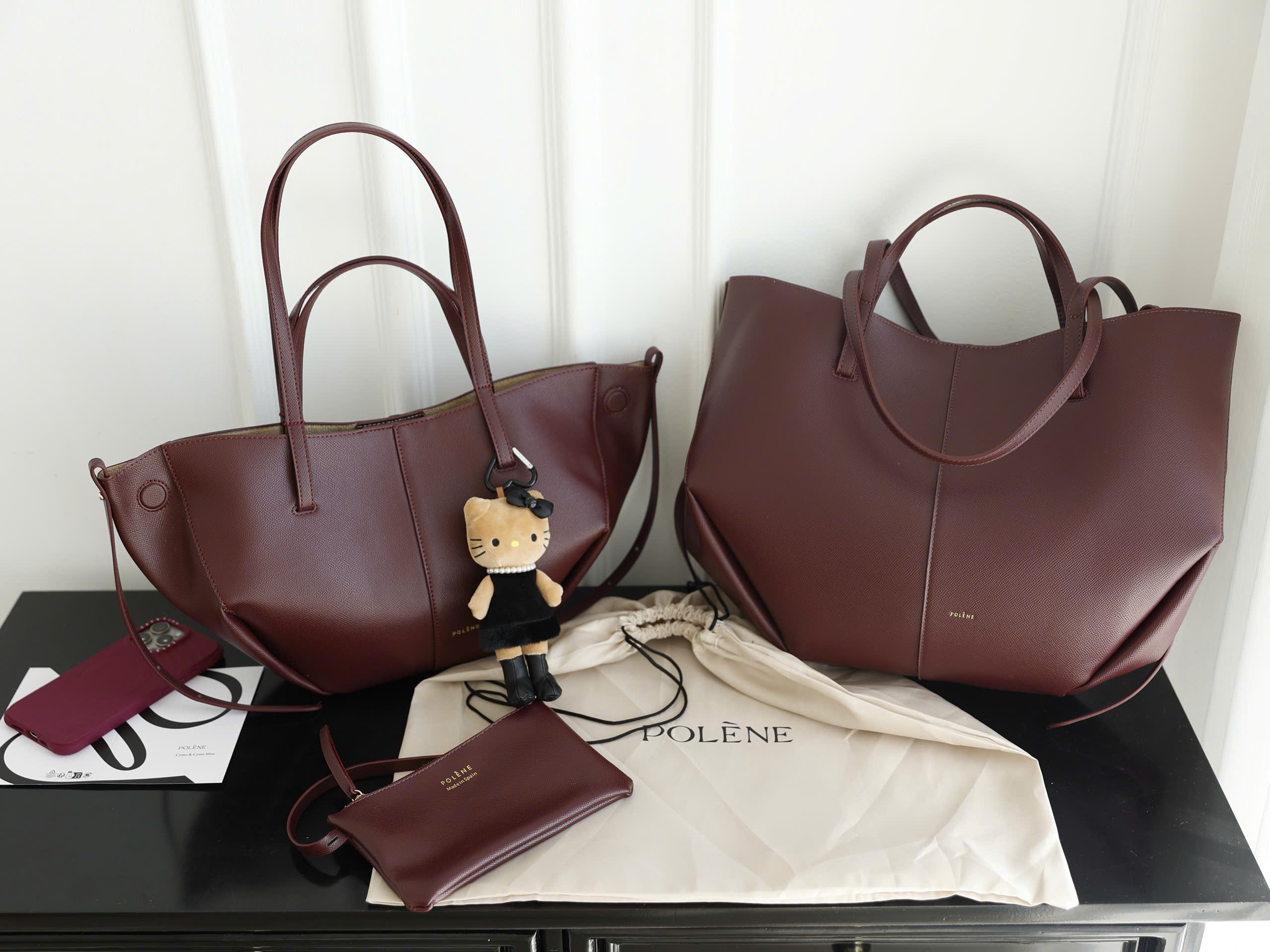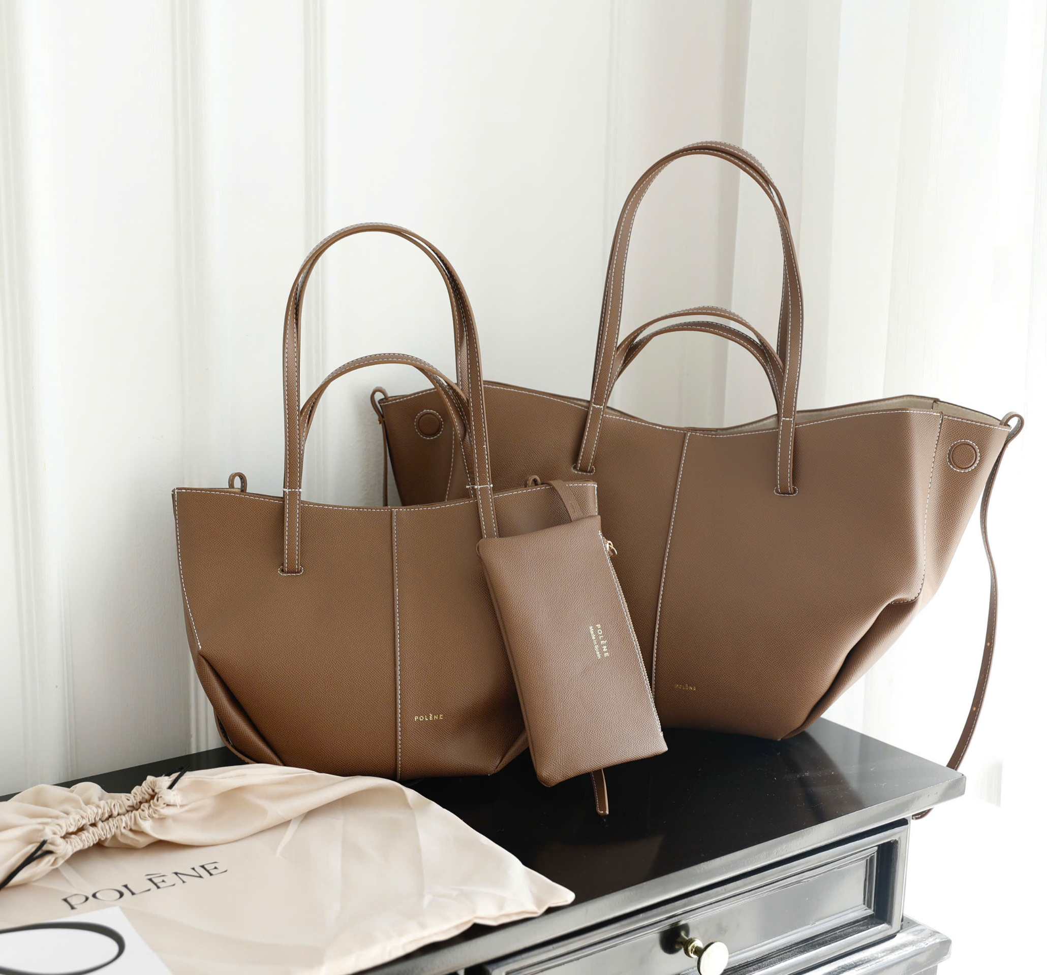 Polene Cyme 2 Sizes available in full color, 1:1 authentic scratched leather material, small size: 25x45cm / large size: 33x56cm