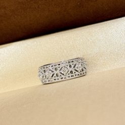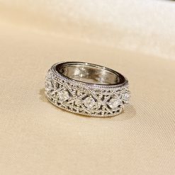 S925 sterling silver cannage patterned diamond ring, white gold for a sophisticated, luxurious, classic, and versatile look.