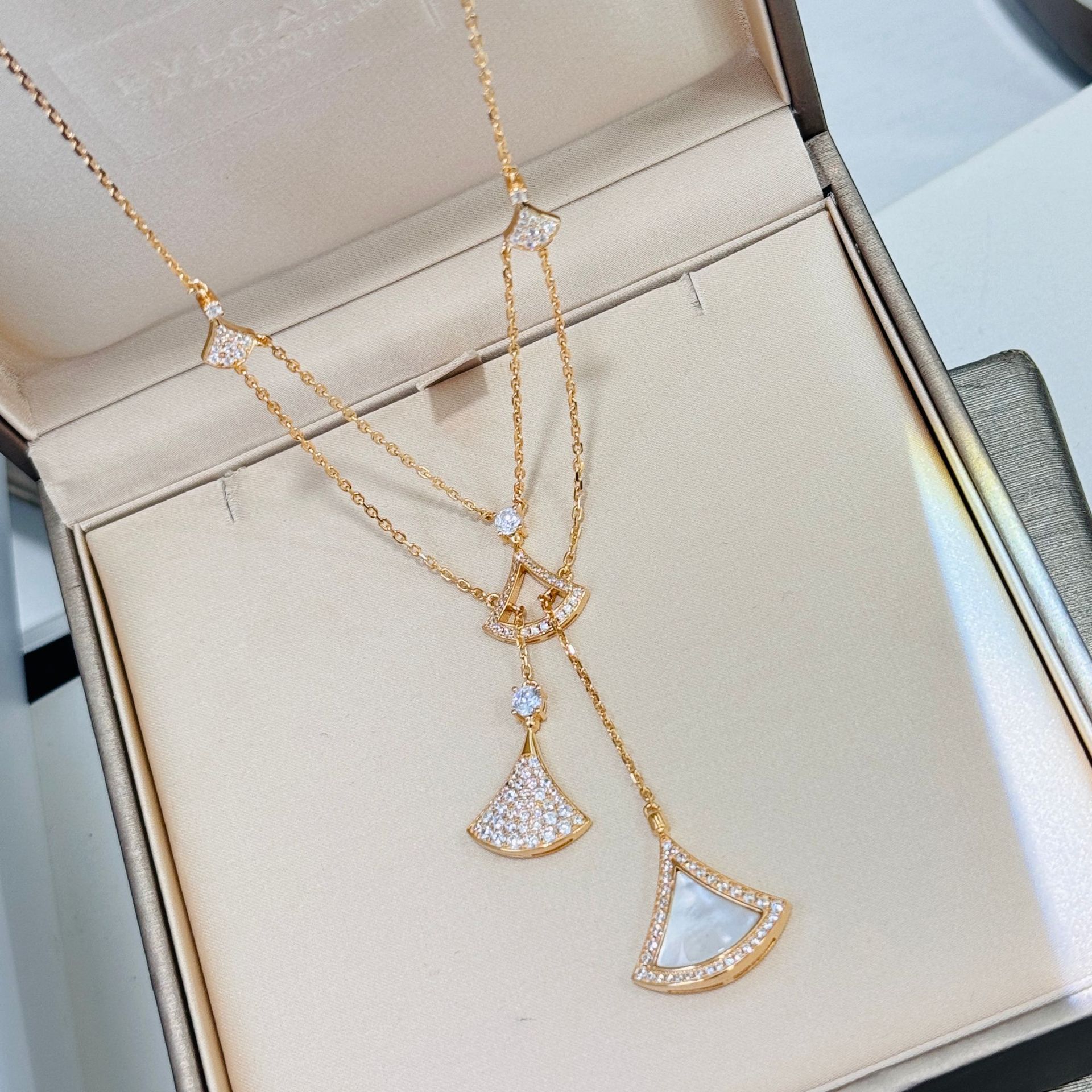 S925 sterling silver layered necklace with tassels, natural white mother of pearl, high-end design, celebrity inspired party style.
