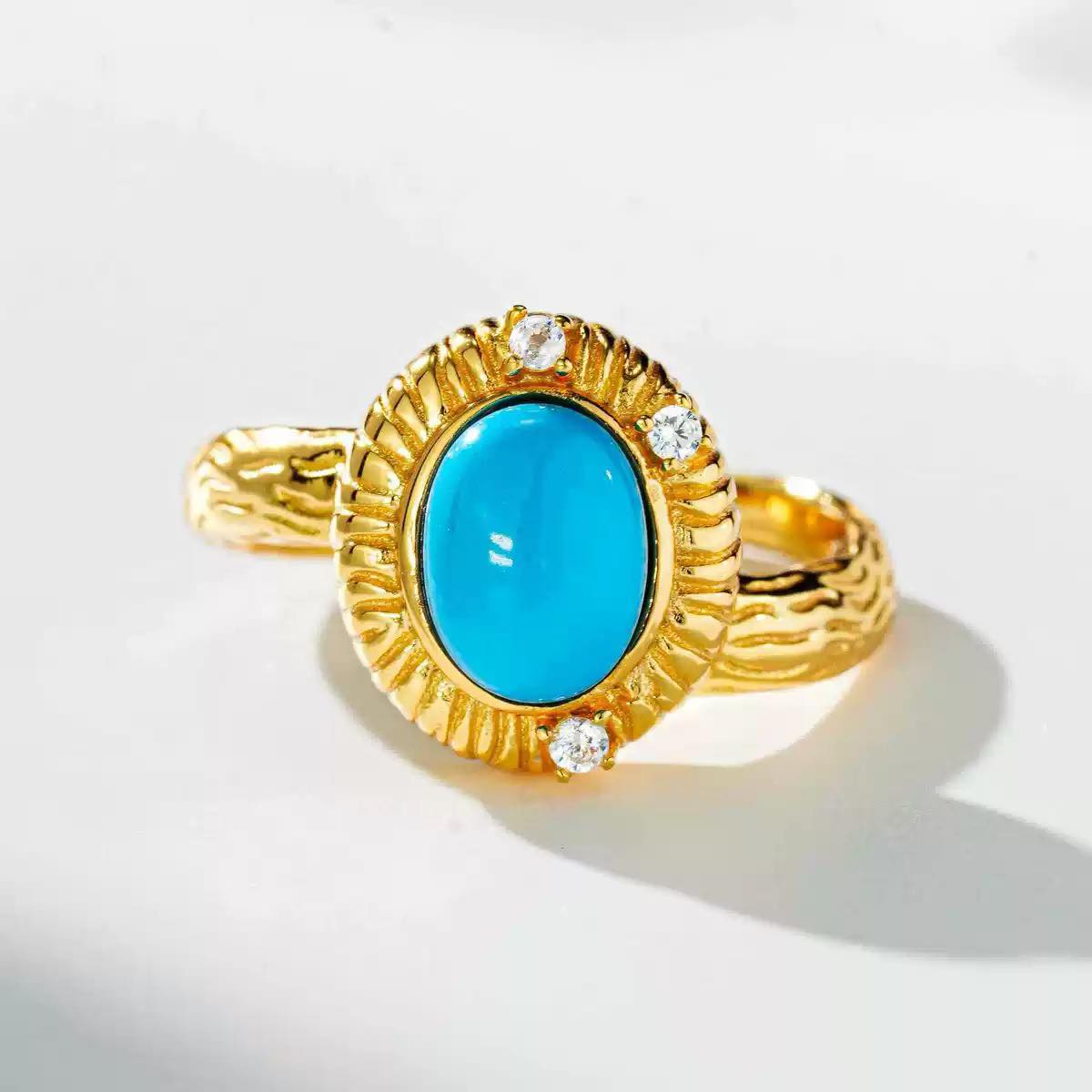 S925 Sterling Silver Ring for Women with Turquoise Stone, Classic Design, 24K Gold Plated S925 Sterling Silver Ring for Women with Turquoise Stone, Classic Design, 24K Gold Plated